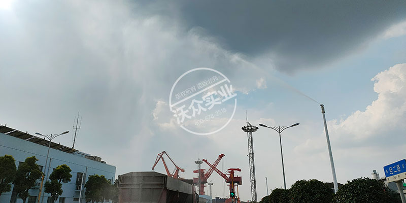 南通海門區(qū)寶鋼物流內(nèi)部通道安裝的高空射水菲霧降塵除霾系統(tǒng),一臺(tái)7.5Kw主機(jī),帶10根6米高桿對(duì)內(nèi)部道路全覆蓋式噴霧降塵除霾,清潔周邊空氣環(huán)境。