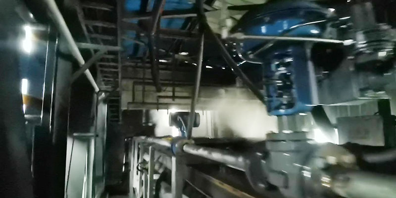 位于平頂山的某焦化廠,在皮帶傳輸焦炭的時(shí)候,大量粉塵顆粒從封閉的皮帶倉(cāng)益出,使得整個(gè)車間的工作環(huán)境極差。為改善焦化廠工人的工作環(huán)境,在皮帶倉(cāng)內(nèi)安裝特質(zhì)的空壓微霧噴頭,調(diào)整噴射的距離和方向,平均分布在源頭,終端,過程中,近距離的對(duì)傳輸過程中的粉塵進(jìn)行精準(zhǔn)的噴霧降塵,防止粉塵外溢,改善工人工作環(huán)境,達(dá)到綠色環(huán)保生產(chǎn)的要求。