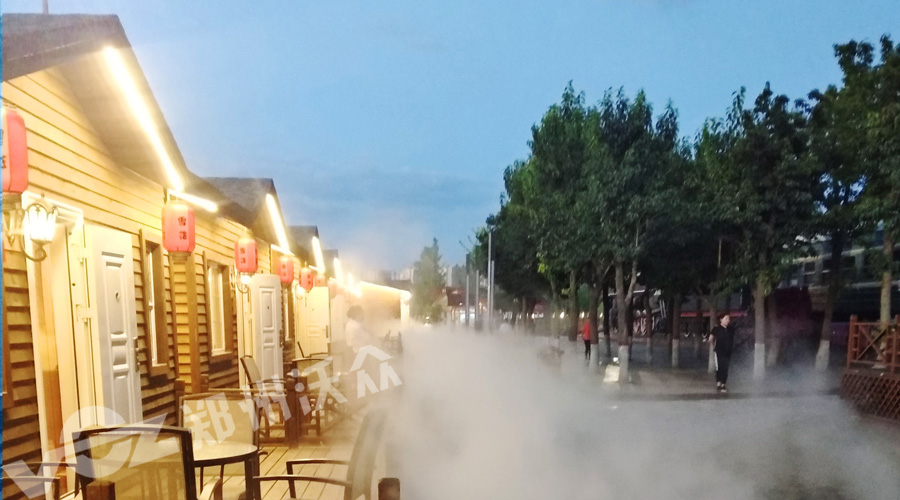 沃眾降溫噴霧系統(tǒng),細(xì)膩、微濕的霧氣不會(huì)打濕皮膚和衣衫,微米級(jí)的水霧顆粒在空氣中蒸發(fā),會(huì)帶走熱量,為商業(yè)街道內(nèi)帶來(lái)絲絲清涼,為人們帶來(lái)舒適的街區(qū)環(huán)境!