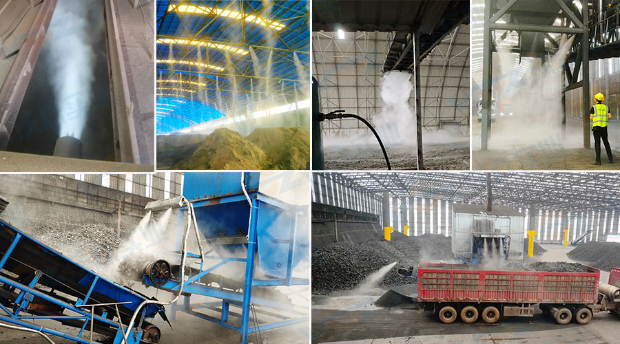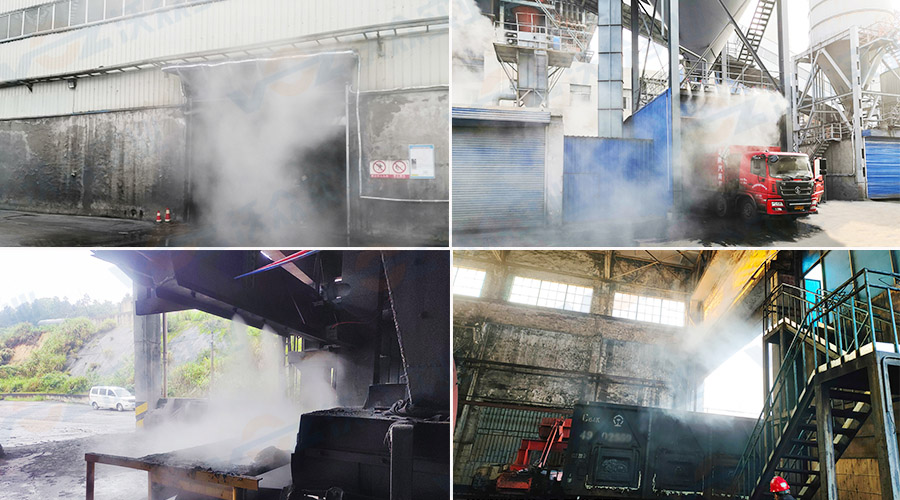 在廠房?jī)?nèi)部,物料堆積處、裝卸點(diǎn)、運(yùn)送帶等區(qū)域,易激起粉塵的區(qū)域,設(shè)置沃眾空壓微霧抑塵設(shè)備,減少粉塵揚(yáng)起,為工作人員創(chuàng)造良好工作環(huán)境。